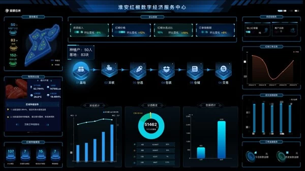 目前,浪潮云洲"产业融合一体化服务"模式已在多地落地实践。在江苏淮安,围绕红椒特色产业,浪潮云洲以新一代数字化基础设施投资为手段,以覆盖全产业链的数字化服务为工具:打造淮安红椒线上交易集散中心进行数字采收及订单交易,实现交易在线上,交割在淮安;建设全国产能前十的基质肥产线,拉通基质肥供应链,改善土壤板结问题;打造全国首个红椒分选产线,为经销商提供智慧分选;并以订单为切口,开展红椒标准化、品牌化运营。通过为产业链各主体提供种植、加工、运输等配套服务,吸引周边订单汇集本地,拉动产业效益。