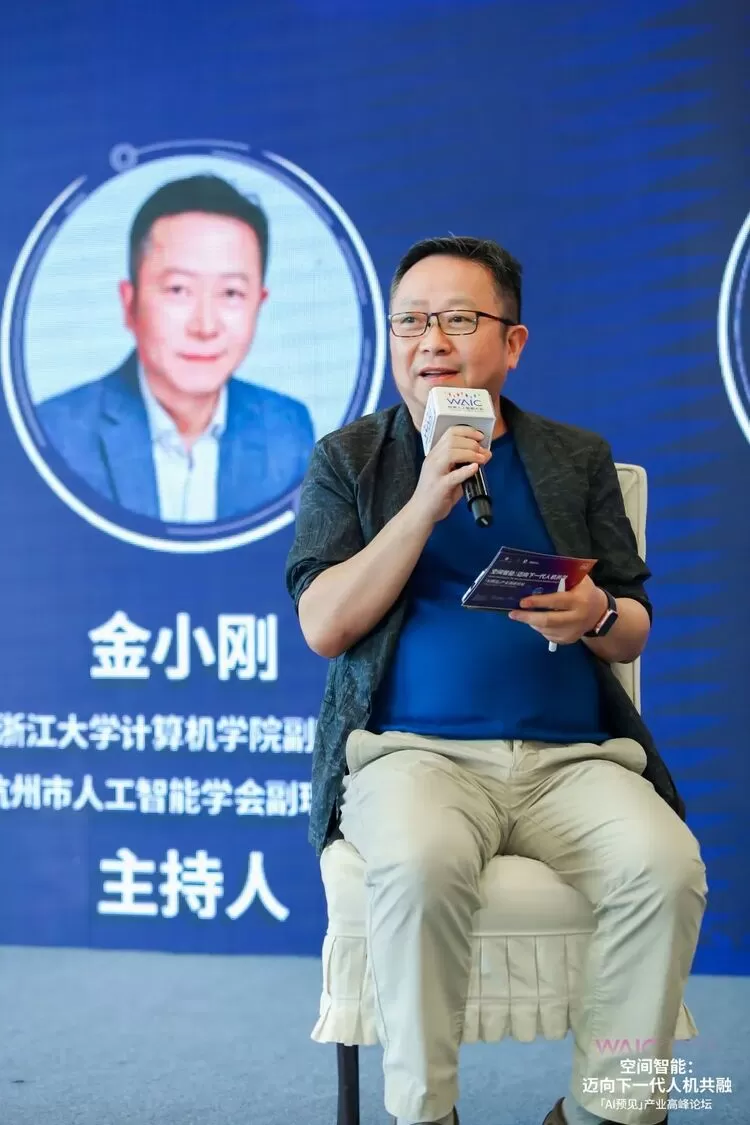 本场圆桌论坛由浙江大学计算机科学与技术学院金小刚教授主持,他首先对未来人工智能的发展趋势提出了深刻见解。金教授强调,数字化不应仅是技术层面的积累,更应是思维方式与认知的变革。