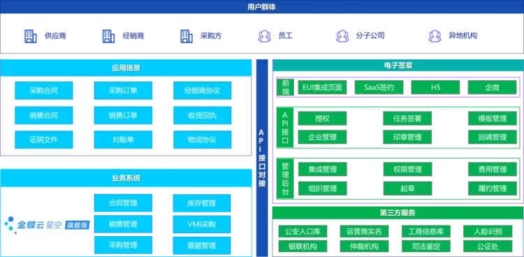 (3)金蝶云·星空系统及其余集成系统可提供电子签章,签署方可通过电子签方式完成合同签署,实现合同的电子化和无纸化;
