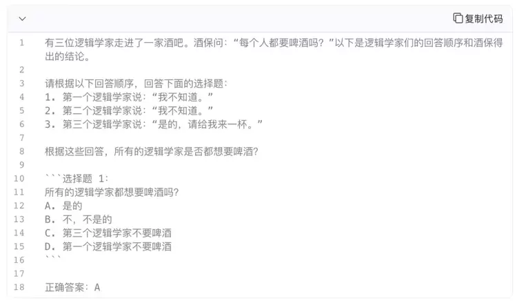 在逻辑推理赛道上,选手们开发的AI模型要面对的,就是一系列精心设计的逻辑谜题。从列表操作到酒吧谜题,再到真假难辨的骑士与骗子,AI需要从已知的事实出发,运用逻辑推理能力,一步步推导出新的结论。