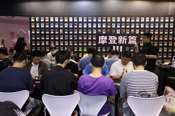展位现场展出了众多万智牌的精美收藏品,其中不乏黑莲花、未切大套等珍品,还包括万智牌与多个知名IP合作的联名产品。此外,现场还设置了试玩体验、“天选之人”抽卡、打卡领周边等丰富多彩的互动环节。展会第三天,上海《摩登新篇3》黄金狮子杯限制赛的总决赛也在现场打响。