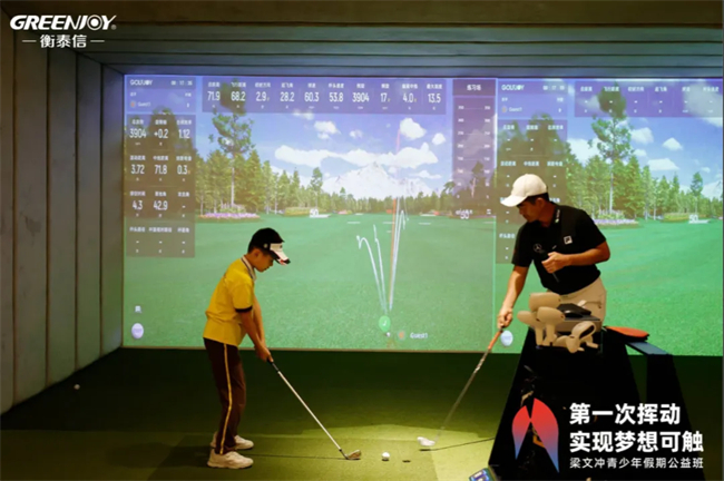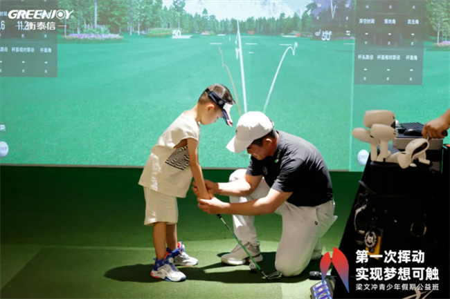 在东莞站的开营仪式上,梁文冲通过衡泰信室内高尔夫模拟器指导小朋友们挥杆击球,并亲身上阵演示标准动作,引来小朋友们阵阵喝彩。精彩的高尔夫表演不仅一下子拉近了孩子们与冠军偶像的距离,也令孩子们对高尔夫产生了浓厚兴趣。