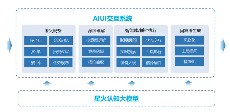讯飞 AIUI 平台依托于讯飞星火大模型底座完成了全面升级,统一了现有多个技术环节,形成了一个更智能的交互大脑。它不仅能够无缝复用 AIUI 平台在天气、音乐、故事等通用领域的多年官方技能效果,还针对用户需要自定义的命令控制场景开放了文法自定义配置。针对用户需要重点泛化的核心业务场景,开放了大模型智能体的自定义接入,只需简单的 Prompt 配置,大模型的意图理解准确率即可在开放场景下达到优秀水准。