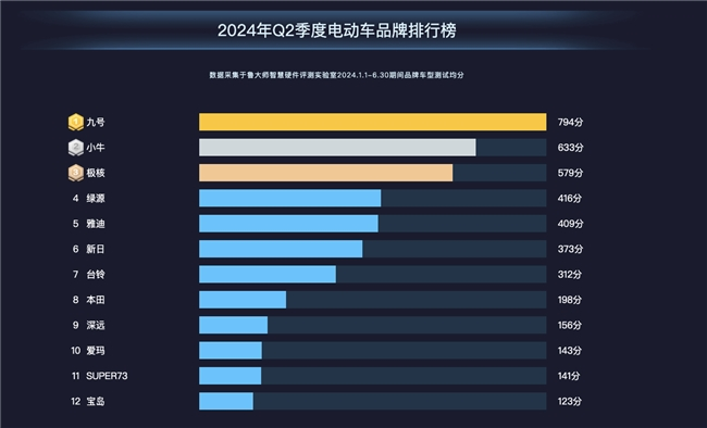 - 鲁大师2024半年报电动车智能排行:九号继续霸榜,极核本田乘胜追击