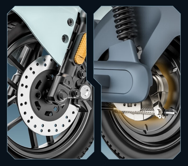 新车还配备了大家比较熟悉的TCS牵引力控制,可提升车辆在湿滑路面等低附着力路面下的骑行安全和稳定性,值得一提的是,雅迪冠能M85也配备了TCS智能牵引力系统,可通过智能调整电机扭矩,在车辆打滑时自动控制空转,同时还搭载了细分市场中比较少见的陡坡缓降,车辆在下坡时自动介入电子刹车,保持速度稳定且安全。