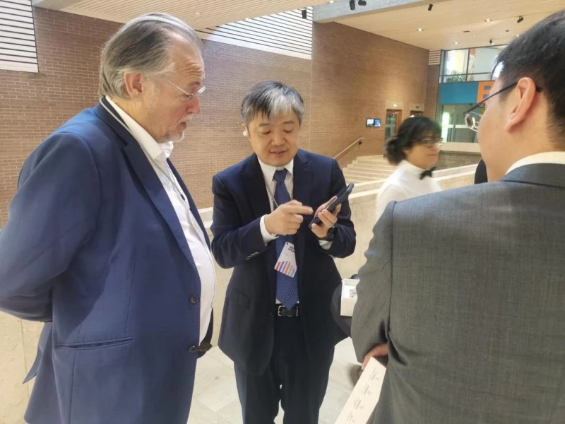 在本次达沃斯科学峰会上,胡郁就带领专家学者们一同体验了未来智能会议耳机的同传翻译功能,相关学者们也“现学现用”,迅速将耳机的“同传听译”和“摘要总结提取”功能用在了论坛的交流现场。