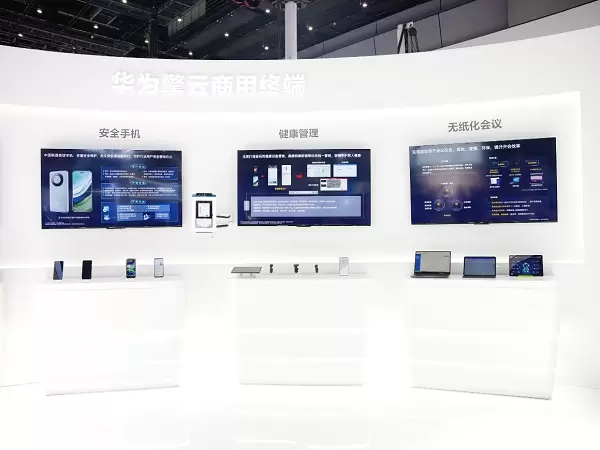 政企内部各类会议众多,以纸质会务材料为主的传统办会方式,不仅成本高昂,在印刷、分发、回收等阶段均存在信息泄露风险。在无纸化会议展区,基于华为擎云 C系列平板打造无纸化会议方案,能为行业提供文件、会议、办公、管理四大安全能力,保障会议会前、会中、会后全流程信息安全,解决传统办会模式弊端。会议筹备阶段,办会人员可以使用平板一键建会,为参会人员定制电子铭牌,对会务资料定向分发;会议期间基于HarmonyOS分布式技术,主持人可以低延迟投屏宣讲;会后对会务文件一键销毁,快速筹备下一场会议。无纸化会议通过全流程数字化管理,有效降低信息泄露风险,同时响应双碳号召。