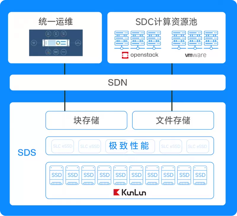 通过采用昆仑技术服务器与大普微SLC / TLC eSSD,并结合软件定义存储(SDS),为某国有银行筑牢数字底座。实现从传统存储向SDS分布式存储的数字化转型,将传统存储业务场景部署到SDS分布式存储上运行,形成高可靠、极致性能的存储保障,使得整体系统的效率和灵活性大幅提升,进而助力银行业务系统快速应对和防控风险,实现降低总拥有成本,加速金融国产化的落地。