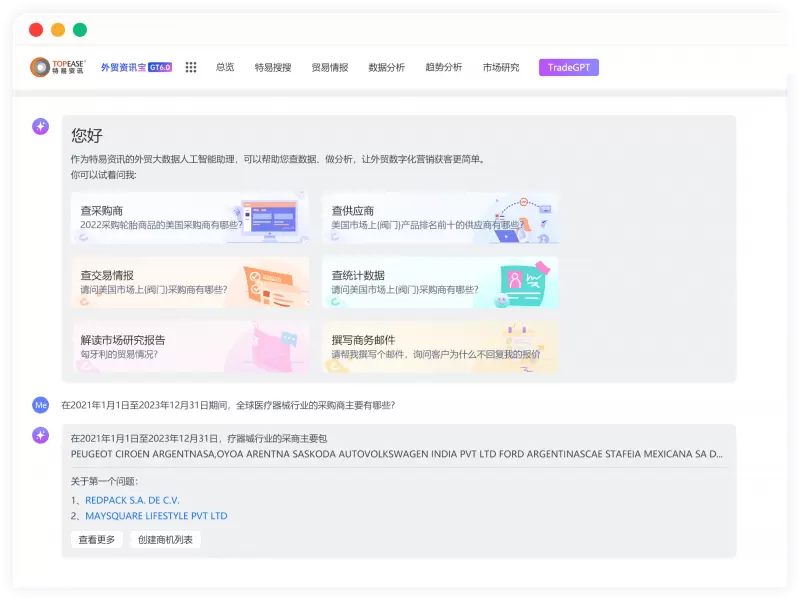 特易TradeGPT:外贸大数据赋能,智能解答进化成长