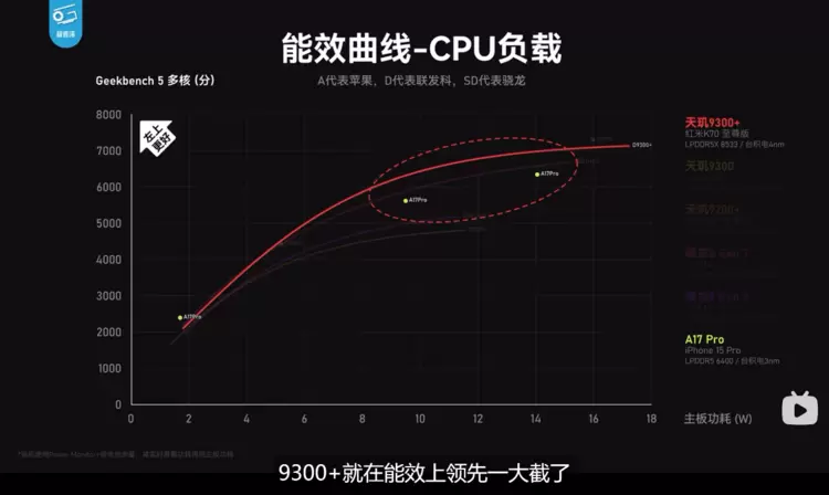 在产品正式发布前,一众科技数码媒体也对红米 K70至尊版的性能展开了全面评测,事实证明红米 K70 至尊版“性能魔王”实至名归。比如,在知名数码科技up主极客湾的评测中,红米 K70至尊版搭载的天玑9300+多核性能第一,大幅领先第二名,在中、高频段的能效表现上也十分突出,明显强于A17 Pro,再一次验证了天玑9300+在能效上的显著优势。