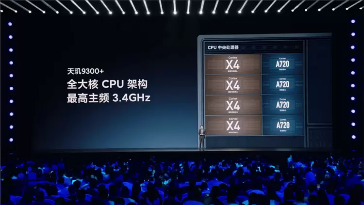 之所以表现如此强劲,是因为天玑9300+旗舰级移动平台CPU延续了全大核架构,最高主频达到3.4GHz,顶级旗舰设计为日常多线程任务、游戏、AI等多种场景提供了强力的性能和能效基底,并配备12核旗舰GPU Immortalis-G720以及搭载硬件级生成式引擎的第七代AI处理器APU 790,AI性能和生成式AI能力也得到了大幅增强。