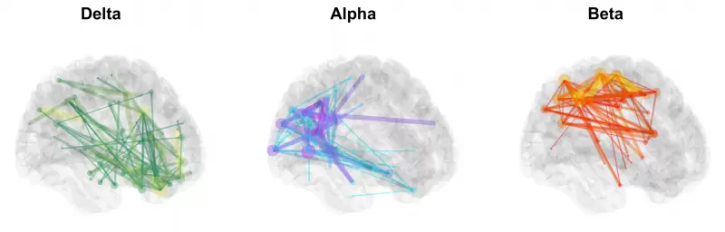 Marvel MEG®脑磁图仪健康人静息态delta,alpha,beta频段脑网络连接图