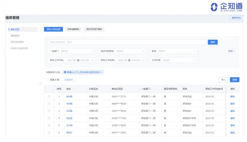 除了研发费用管理之外,企知道·科创空间还为企业提供从研发前到研发中、研发后的全流程管理,包括营销拓客、科创情报、研发管理、知识产权维护、政策申报等功能和服务。企知道平台汇集4700万产业政策数据,全国的60多家分子公司自有上千名专家,包括项目工程师、认证咨询师、财税咨询师、知识产权顾问等,可为全国中小企业提供咨询服务。