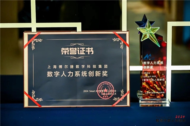 5月23日,在上海举办的2024 SMARTAH智慧行政人资峰上,博尔捷数字科技集团凭借其在数字人力系统领域的杰出表现,荣获了“数字人力系统创新奖”,彰显了集团在人力资源服务数字化领域的领先地位。