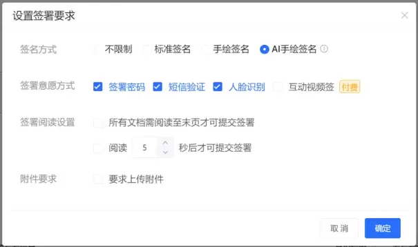 设置仅允许参与方采用AI手绘签名完成文件签署。