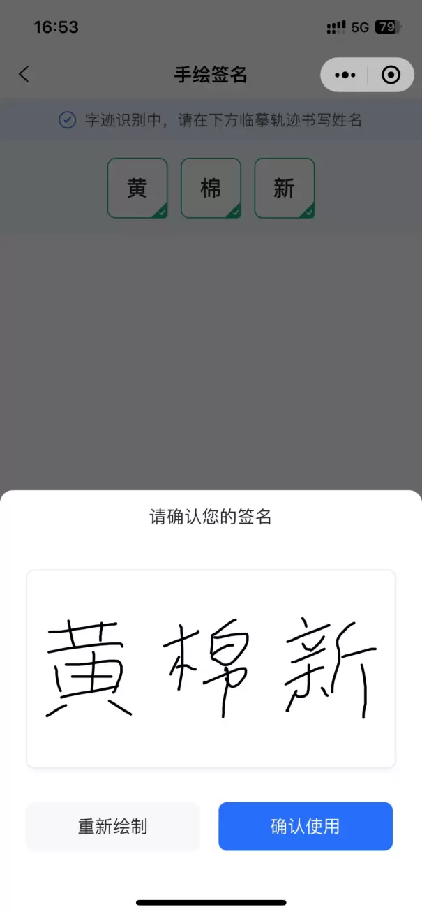 使用AI手绘签名功能不会增加签约难度,用户只需正常签字即可,仅在AI判断签署文字与身份证名称不一致时提醒重新书写。