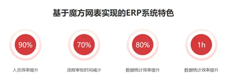 按需而变的ERP,快速应对企业变化:魔方网表是可配置数字化平台,赋予了企业开发ERP软件高度的灵活性和可拓展性。企业可依据市场变化和内部管理调整随时的快速对软件功能的增添和管理流程的调整,从而让ERP软件与企业完美融为一体,高度配合让企业管理更加科学高效,进而不断驱动企业核心竞争力提升。