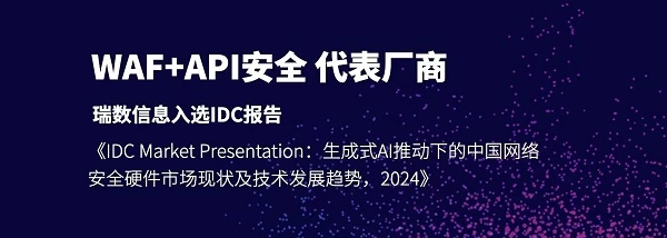 WAF+API安全代表厂商|瑞数信息入选IDC报告《生成式AI推动下的中国网络安全硬件市场现状及技术发展趋势》