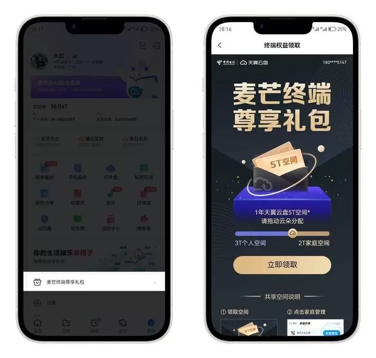其中,天翼云盘提供了“麦芒终端尊享礼包”,用户可免费使用一年5T超大空间。