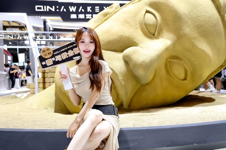 在2024ChinaJoy展会现场,一场视觉与科技的盛宴正如火如荼地上演。HOTDOG携手“秦潮觉醒”开启元宇宙潮流新纪元,突破传统展陈界限,打造了一个超300平方米的潮流艺术空间。静默威严的巨型兵俑以其尚大之美形成了一种独特的视觉冲击力,未来感的装饰构造则为空间增添了一份神秘的科幻色彩,构建出独特的“废土风”末世美学。