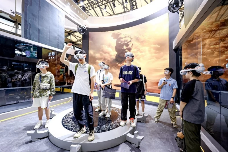 在前沿XR技术的赋能下,空间内的体验更是超乎想象。沉浸式VR视觉,极具震撼的5D全感交互,让现场观众站立于剧情同款“蜉蝣体验器”便可深度感受“秦潮觉醒沉浸式探索体验”的精彩片段,玩家们能够身临其境地探索未知的领域,发掘元宇宙世界的奥秘。这种前所未有的新奇体验吸引了大量观众,现场人气爆棚,体验者络绎不绝。