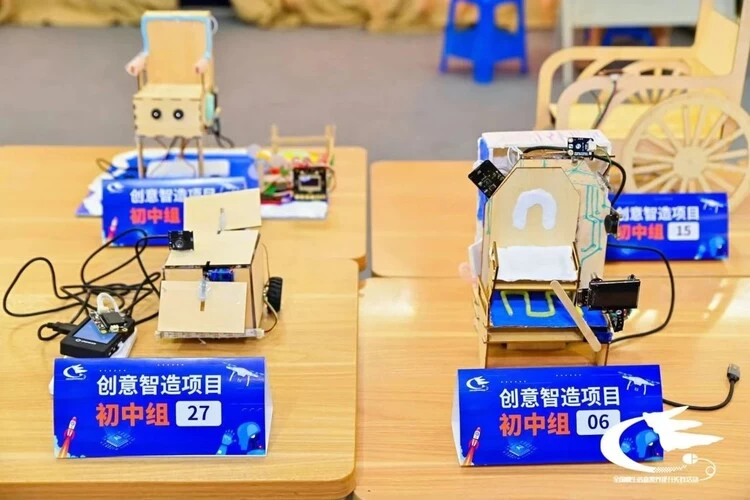 本次活动设置了数字创作、计算思维、科创实践三大类,其中“科创实践”类开展了创意智造、智能机器人、智能博物等多个项目。其中创意智造项目采用命题式主题,主题为“智能椅子”,鼓励学生创新的同时,引导学生关注实际,从现实场景出发进行创作,这需要学生对日常生活有足够的感知,关心身边的事物,然后能够通过观察发现事物的本质,发现问题,了解需求。