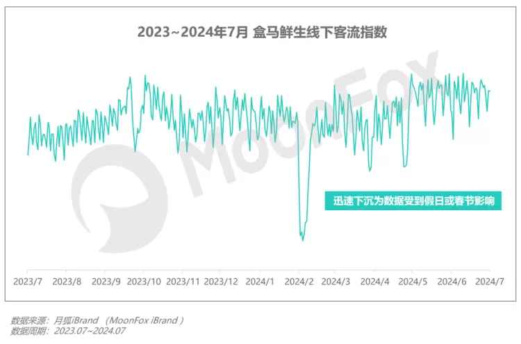2023年7月,盒马鲜生推出“移山价”以抢夺中产消费者份额,结合月狐iBrand客流指数,策略落地后其线下店流量迎来一波明显上涨,2024年Q1,盒马上线“移山打牛”,将安格斯牛肉价格拉低。进入Q2,盒马NB奥莱折扣店已开至百家,折扣门店+社区团购的模式迅速吸引用户,结合其较低的开店成本,预计下半年奥莱折扣店将成为盒马的核心发力点,在部分传统零售门店关停卷服务的浪潮下,盒马希望低价、产品质量两手抓,以牺牲短线利润的方式加速抢占中产及以下市场,当下的盒马已不再将山姆视为唯一对手,更广阔的下沉市场也将是其未来布局的主要方向。
