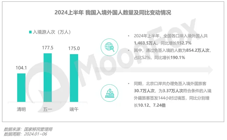 不止内需,入境游开始成为我国旅游行业的新增长点。144小时过境免签政策于2024年第二季度迅速落地,截至7月15日,我国满足该政策的适用口岸数量已增至37个。政策下,美、加、英等54国公民持有效证件可享受免签,并从事旅游、探亲等短期活动。免签热潮的加速落地开始吸引更多欧美游客关注中国,诸如“city不city”等热梗爆火。长期来看,过境免签将持续带动我国旅游行业发展,入境客源国家结构也将从日韩、东南亚进一步丰富至欧美等地,入境游客水平也将加速恢复至疫情前水平。