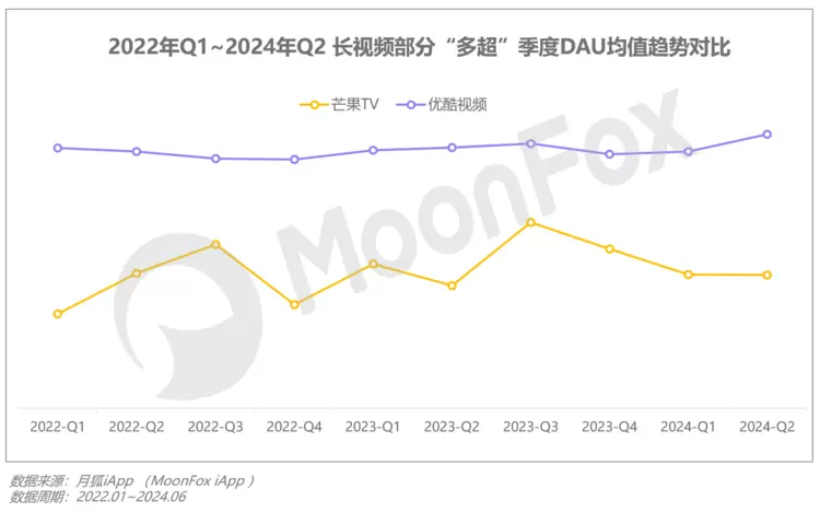 2024上半年,长视频领域仍保持“两强多超”的行业格局,腾讯、爱奇艺稳坐“两强”,芒果TV、优酷引领多超。