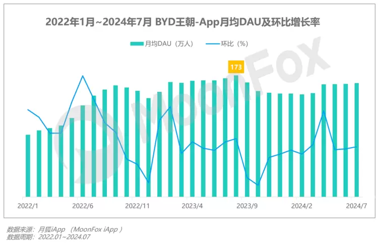 品牌层面,价格战浪潮下部分品牌逐步站稳脚跟,牺牲部分利润以换取市场份额。以比亚迪为例,自2020年起,其DM-i超级混动、CTB电池车身一体化等技术加速落地,2022年起比亚迪全面布局新能源车型,全年销量186.34万,迅速进入头部梯队,随之,其配套App用户量级走高,据月狐数据显示,BYD王朝App于2022年9月创短期新高,超159万。