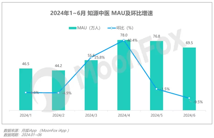 另一方面,中医调理已成为老年人养生的重要一环,中医药老年健康服务的发展和中医药康养平台的创建是我国“十四五”健康老龄化规划的重点任务之一。随着线上化水平的提升,中医类内容开始进入线上,据月狐数据,截至2024年4月知源中医MAU达78万人,环比增长超40%,达短线高峰。