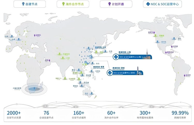 对于泛娱乐行业来说,无论是跨国游戏联机、全球动漫同步播放,还是国际赛事直播,都需要一个强大而可靠的全球网络支持。南凌科技基于自建的骨干网,已经部署了海内外网络节点76个,节点位置涉及国内23个省、直辖市、自治区的37个城市;中国大陆以外13个国家和地区,包括美国、德国、澳大利亚、日本、新加坡、马来西亚、泰国等,能够确保全球网络的畅通无阻。