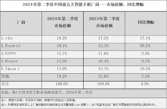 二季度中国智能手机市场出货量同比增8.9% vivo登顶第一