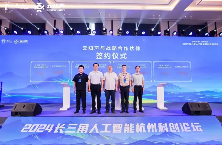 现场,杭州云知声与杭电(海宁)信息科技研究院有限公司、中国移动通信集团浙江有限公司富阳分公司、浙江省机器人协会、浪潮智能终端有限公司等多家龙头企业和行业机构签署战略合作协议,汇聚长三角AI力量,为富阳人工智能产业发展持续注入新动能。