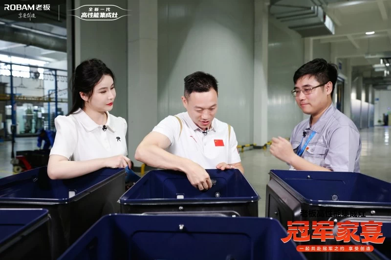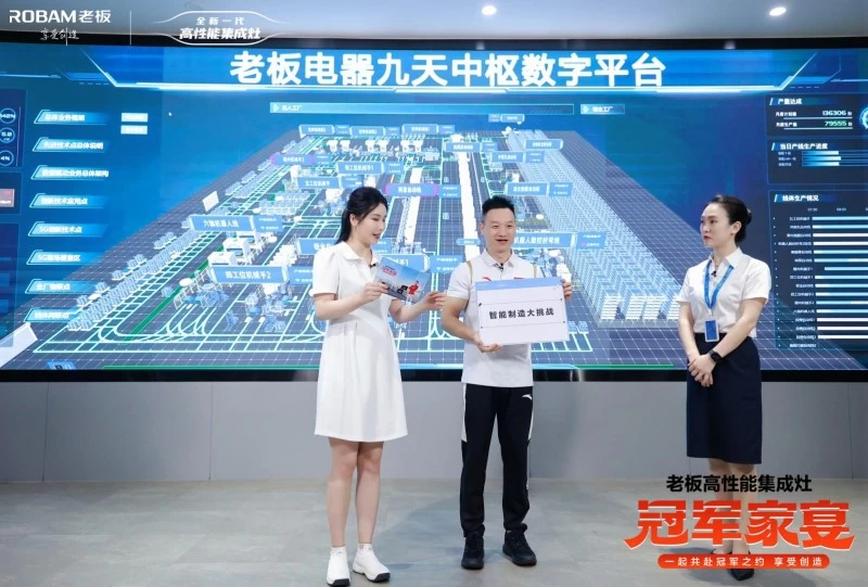 刚化身老板集成灶“超级体验官”,杨威便直奔老板电器的无人智能制造基地,开启了冠军品质的探索之旅。