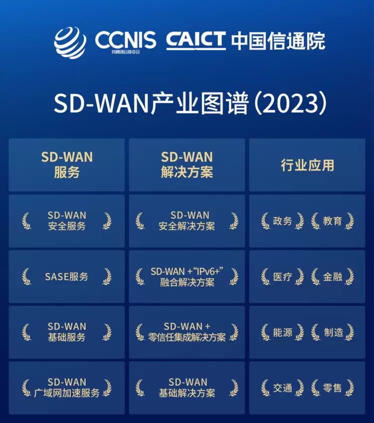 近日,中国信通院联合通信标准化协会算网融合产业及标准推进委员会公布了「2023年度SD-WAN产业图谱」,南凌科技成功入选该图谱中的8大服务/解决方案类别和8大行业应用。连续两年入选,可以看出行业、客户对于南凌科技智能SD-WAN全球互联网络服务/解决方案的持续认可。