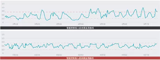 智慧加氯控制系统的上线使得出水余氯能够稳定在0.3mg/L至0.8mg/L之间,消除了原有控制时较大的波动,并实现了24小时全自动化精准加氯,大幅减少了人为干预,实现了无人化生产。