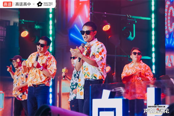 “声如夏花”全国中学校园十佳歌手大赛是专属于高途高中师生的音乐盛事,很多平日里深受学员喜爱的老师都来到了现场。高途高中数学专家张宇、英语专家朱汉祺、语文专家阎振远三位老师组成GTBOYS组合,为在场观众带来精彩的歌曲串烧。这些平日同学们只能在线上课堂见面的老师,来到音乐的舞台上以另一个面貌与大家见面,在现场和直播间掀起一阵狂欢。