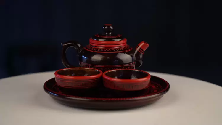 除此之外,思看科技技术团队还完整了采集了扁形酒壶、插花瓶、茶壶三件套、射日盘、马鞍等代表性彝族漆器的高精度三维数据,结合思看科技小熊猫智能贴图软件,从漆器纹理图像中提取特征和结构,实现与外观相一致的纹理映射和贴图效果,还原实物逼真的纹理色彩。