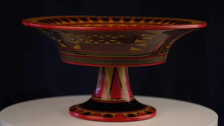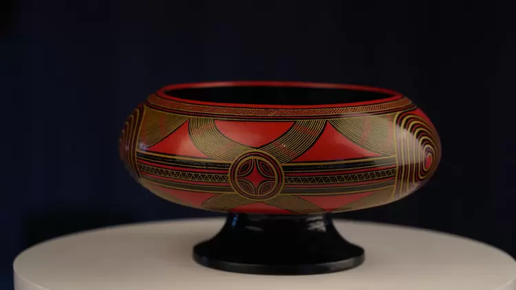 彝族漆器以传统工艺和独特的图案装饰而闻名,它不仅是彝族人日常生活中的器物,更是承载了彝族悠久历史和独特文化的象征。它的制作材料主要采用木器为基底,经过多道工序进行雕刻、涂饰和装饰。