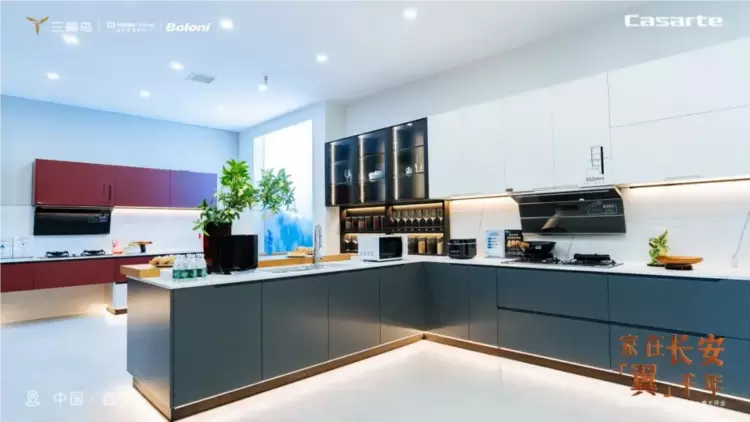 以往空间美感的一大制约就是家电和家居的割裂,诸如色彩不统一、尺寸不协调都影响着家的美感。而在三翼鸟的西安城市体验中心,家电家居一体化的设计,带来色质统一、完美融合的无界美学新体验。如三翼鸟智慧厨房,冰箱与橱柜材质同色同源,面面齐平,线线齐通,刷新了厨房美学的新高度。