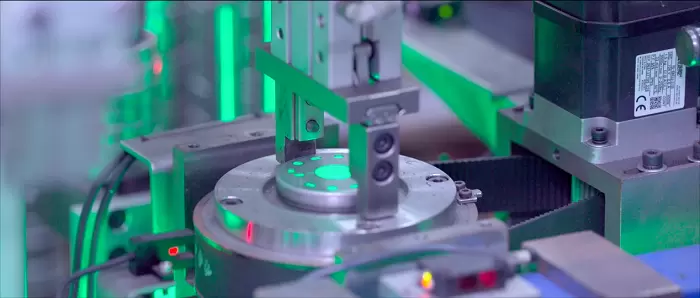 美芝容桂工厂包含装配、卷线、机加工和钣金四大车间,据美芝容桂工厂自动化工程师吴工介绍,这四大车间均建设了代表本车间最高自动化水平的专属未来线,自动化升级已经颇具成效。其中卷线车间的变频产线除了人工插入端子环节,能够全自动化处理从下料、绕线到出料的过程;机加工车间则在部件分选和上料环节实现了1.5微米的高精度自动化成果;钣金车间完成视觉AI识别检测安全系统建设,形成“无人化”区域;而装配车间调芯产线则率先打造了智能化“黑灯车间”,凭借多项首创成果为家电零部件自动化制造树立了行业标杆。