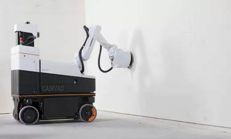 美国Canvas 机器人主要是进行干墙处理。Canvas可以自动识别墙板的接缝,喷涂密封胶,打磨,然后对整个表面进行涂漆,其“大臂”可以伸缩至15.5英尺,在高处完成绝大部分工作,并收集99.9%的打磨产生的灰尘。2023年,Canvas宣布与建筑材料制造商USG合作。