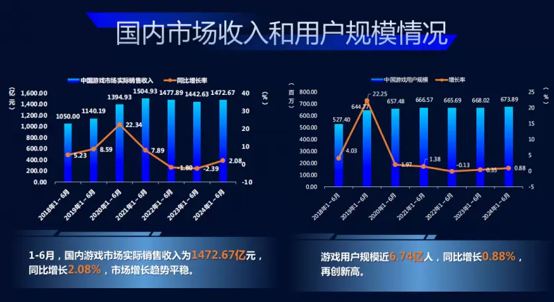 7月25日,中国音数协游戏工委发布《2024年1-6月中国游戏产业报告》,披露了今年上半年国内游戏市场情况。