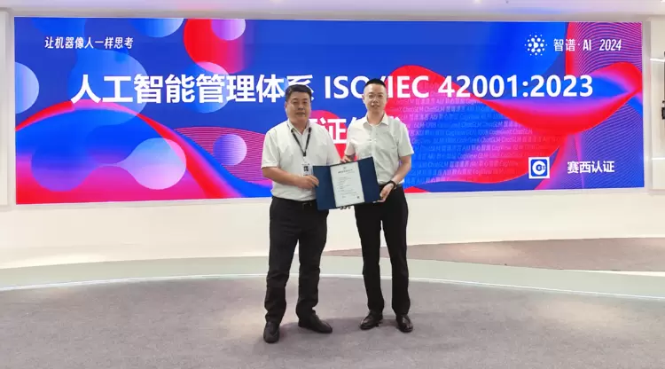 2024年7月29日,北京智谱华章科技有限公司(以下简称“智谱”)获得由北京赛西认证有限责任公司(以下简称“赛西认证”)颁发的ISO/IEC 42001: 2023人工智能管理体系认证证书。智谱总裁王绍兰、赛西认证总经理段淼等出席了颁证仪式。