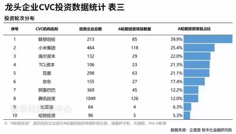 近日在“智本社”最新评论文章《三中全会思考:“押注未来的底层逻辑变了”》中(智本社原文:https://mp.weixin.qq.com/s/E7EKfNxo3YCe6KdxJn_z_Q),凭借对独角兽类企业的高命中率,联想创投同比亚迪、哈勃投资(华为)成为近些年独角兽类企业投资成功率最高的三家CVC机构,超过BAT,其中联想创投的新质生产力独角兽占比达25.2%。在“投早投小”方面,联想、小米、海尔3家龙头企业CVC表现突出,其中,联想创投近4成投资项目都是在企业A轮融资前进入。站在近20年创投市场发展的角度来看,这无疑是CVC崛起的关键节点。