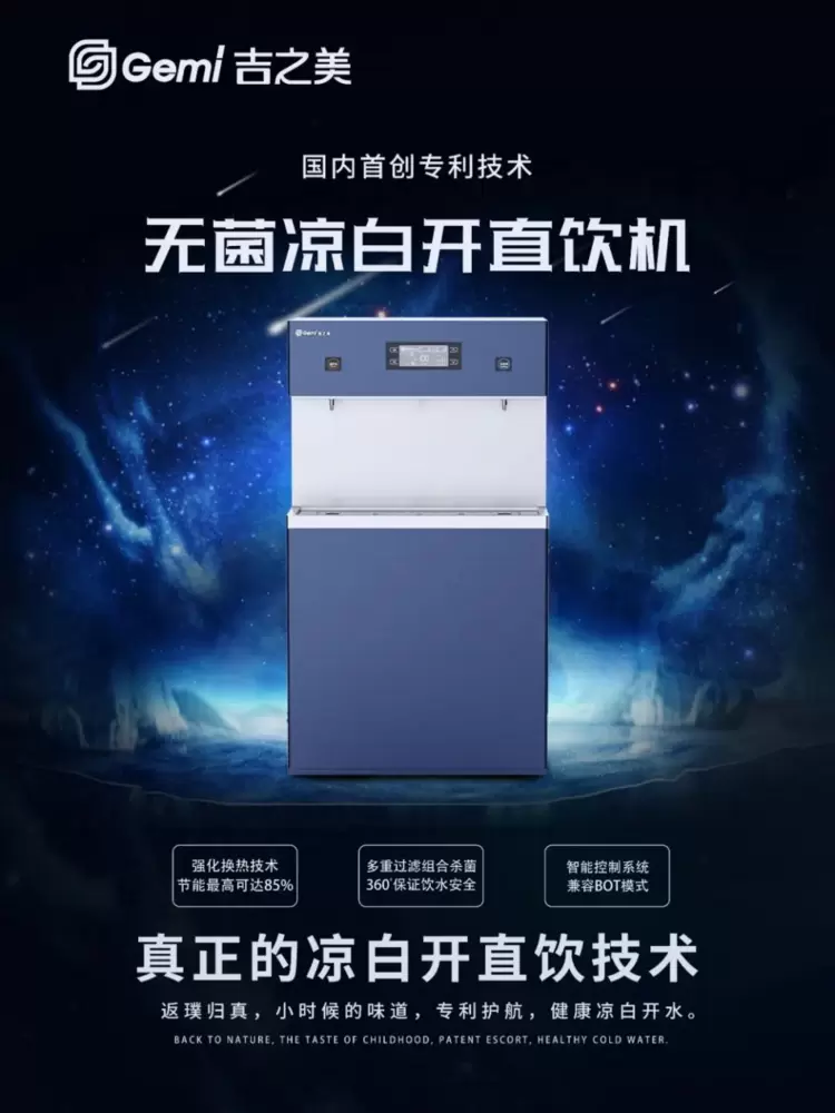 吉之美无菌凉白开直饮机的推出,彻底颠覆了传统饮水设备的概念,实现了从“加热后冷却”到“直接制备无菌凉白开”的跨越。这一颠覆性创新不仅解决了传统饮水机过度加热和温度控制方面的难题,还大大提高了设备的能效,实现了能源的节约和环保,为用户节省了用电成本。