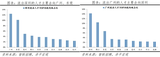 因深圳、广州经济发展速度快,因此能持续集聚人才。广州生活成本、房价在一线城市中最低,深圳叠加低于北京和上海的落户门槛,以及创新的产业结构,提供较多工作岗位,能吸引更多人才到深圳就业。