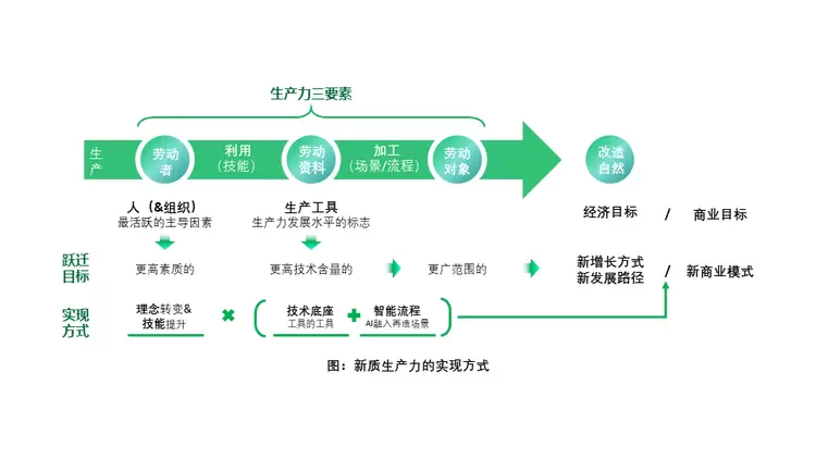 今年,"新质生产力"一词频繁被提及。从经典理论看,生产力三要素包括了劳动者、劳动资料、劳动对象,而新质生产力的核心在于拥有新理念和新能力的更高素质的劳动者,利用先进的工具,十倍、百倍的提升价值创造的效率,不仅增强现有业务,也为未来业务发展和商业变革指明方向。