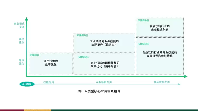 第五种场景就是商业模式的变革,更多是结合行业、结合洞察、结合对未来的一些预判以及企业自己的强项跟弱项,寻找机会点做一些AI的变革,所以先把场景进行细分,然后结合能力来看,到底应该在那个场景里面去落实。